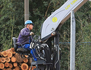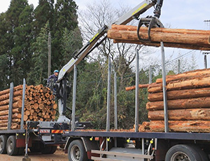 山から切り出した原木を選別所に、そして全国のクライアントの元へ、 自社の商品を私たちの手でお届け。